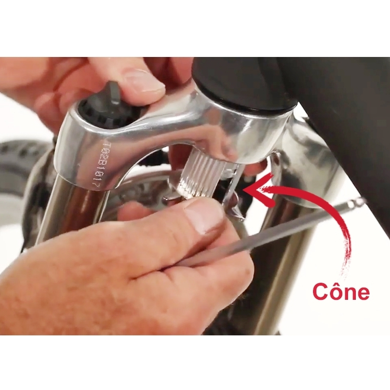 Un cône en aluminium est conçu pour s’insérer dans le tube de direction avec un diamètre de 20,5 à 25,7 mm.