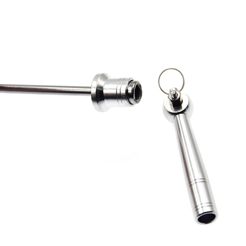 L’outil fourni avec cet ensemble d’antivol permet de détacher les roues ou la selle du vélo. Sans cet astucieux petit outil, il est impossible de retirer la protection avec emprunte à 5 côtés sur les roues ou sur la selle du vélo.