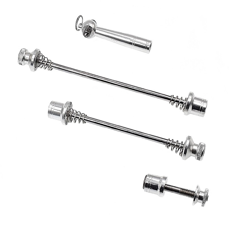 Protégez votre vélo avec cet ensemble antivol de selle et axes sécurisés pour roues avant et arrière.