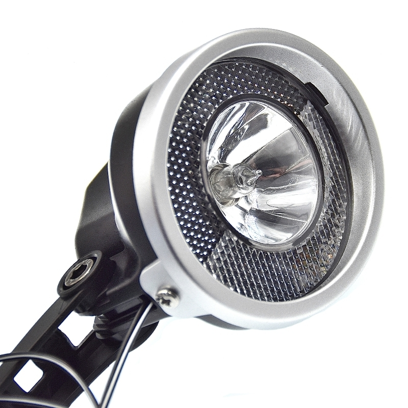 Ce feu avant de vélo 10 lux est alimenté par moyeu dynamo.