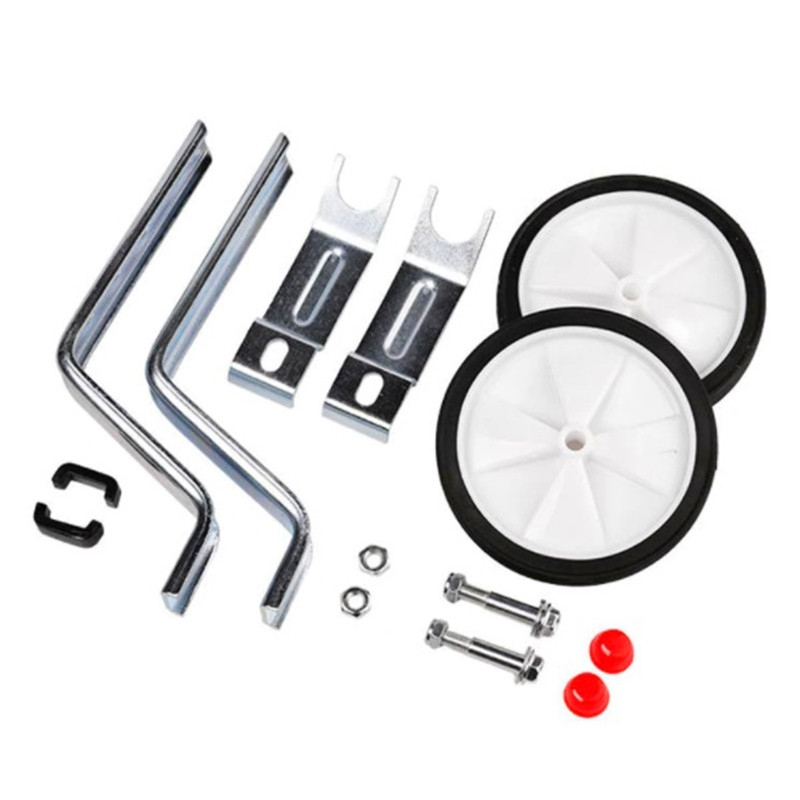 Ces roues stabilisatrice pour vélo enfants sont en acier zingué renforcé avec roues en caoutchouc et plastique. Compatible pour vélo de 12 à 20 pouces sans dérailleur. L’ensemble est vendu complet en kit prêt à monter.