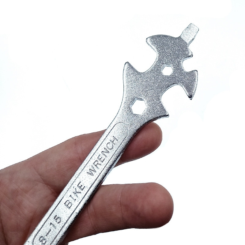 Cette clé est un cet outil multifonctions permettant d’effectuer des serrages ou démontages de certaines pièces détachées et visserie pour vélo lorsque vous entretenez votre deux roues dans votre garage, cave ou lors de vos sortie vélo.