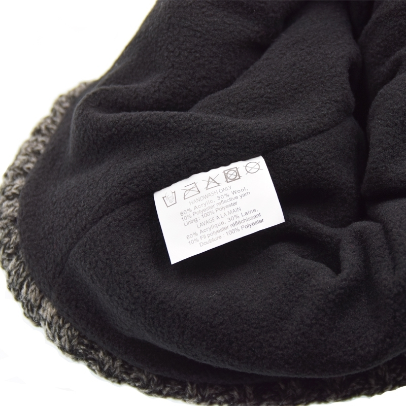 - Matériaux : 30 % Laine, 60 % fibre acrylique, doublure en polaire 100 % polyester