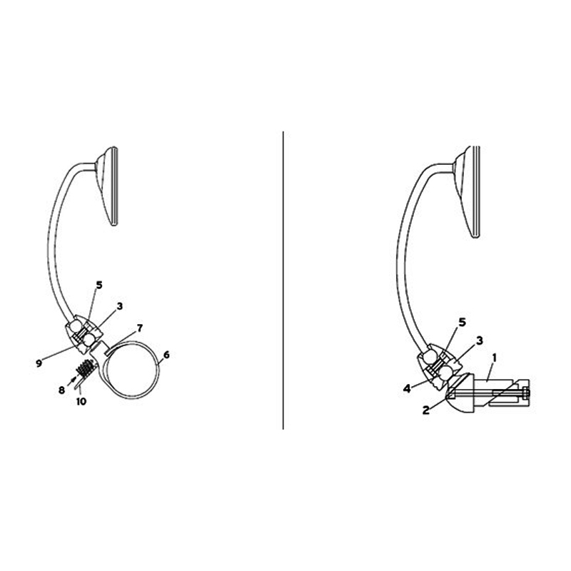 Le rétroviseur peut être monté sur le tube ou les cornes du guidon, avec un système de fixation pourvu d’un collier (diamètre ajustable).ou à l’extrémité du guidon, avec un système de fixation qui s’emboite à l’intérieur du guidon (diamètre standard 22 mm).