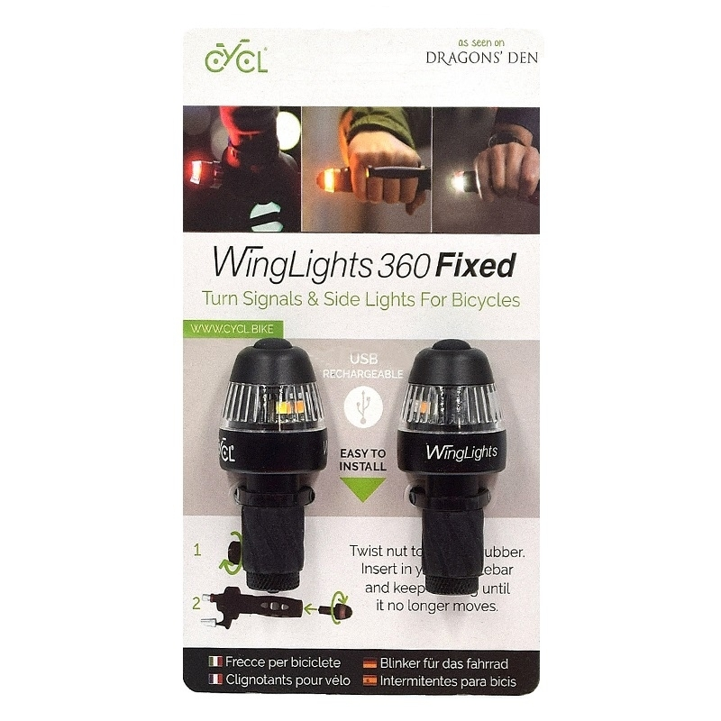 Les clignotants WingLights 360 Fixed Cycl sont compatibles pour des guidons de forme plats ou droits et pour un diamètre interne de 14,7 à 23 mm. Robuste et léger pour à peine 140 grammes, ces feux de signalisation offrent un mode clignotant rouge pour la droite et blanc pour un changement de direction vers la gauche.
