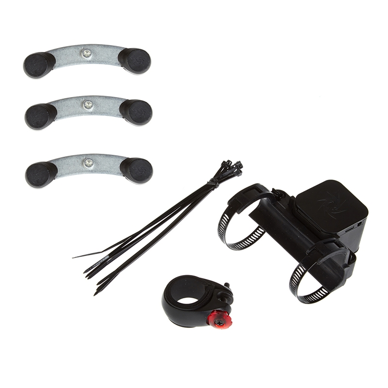 L’installation se fait avec des colliers de fixation fournis et les aimants se montent sur les rayons par serrage au moyen d’une clé allen disponible dans notre kit multi-outil pour cyclistes.