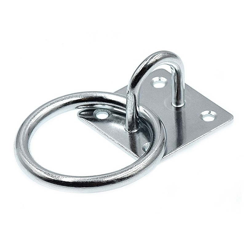 Cette plaque avec anneau libre soudé en acier galvanisé permet de fixer solidement sur un mur un câble ou une chaîne de sécurité pour la protection d’un vélo, scooter, moto ou pour une utilisation dans le jardin.