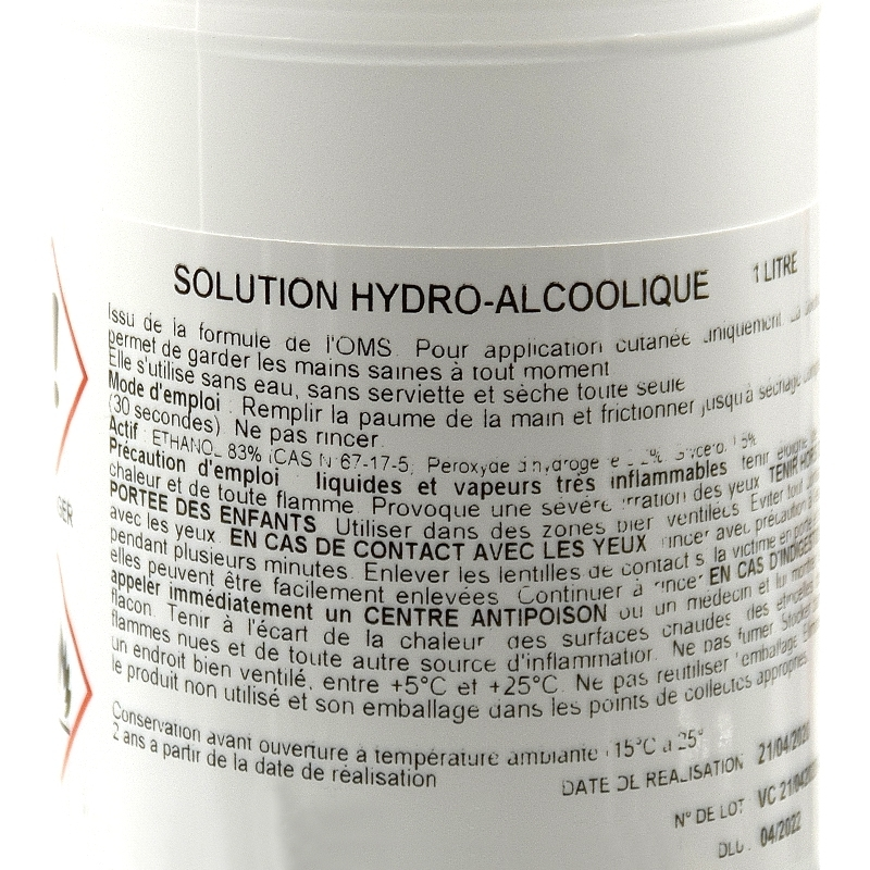 Ce bidon de 1 Litre avec bouchon verseur permet la désinfection des mains.