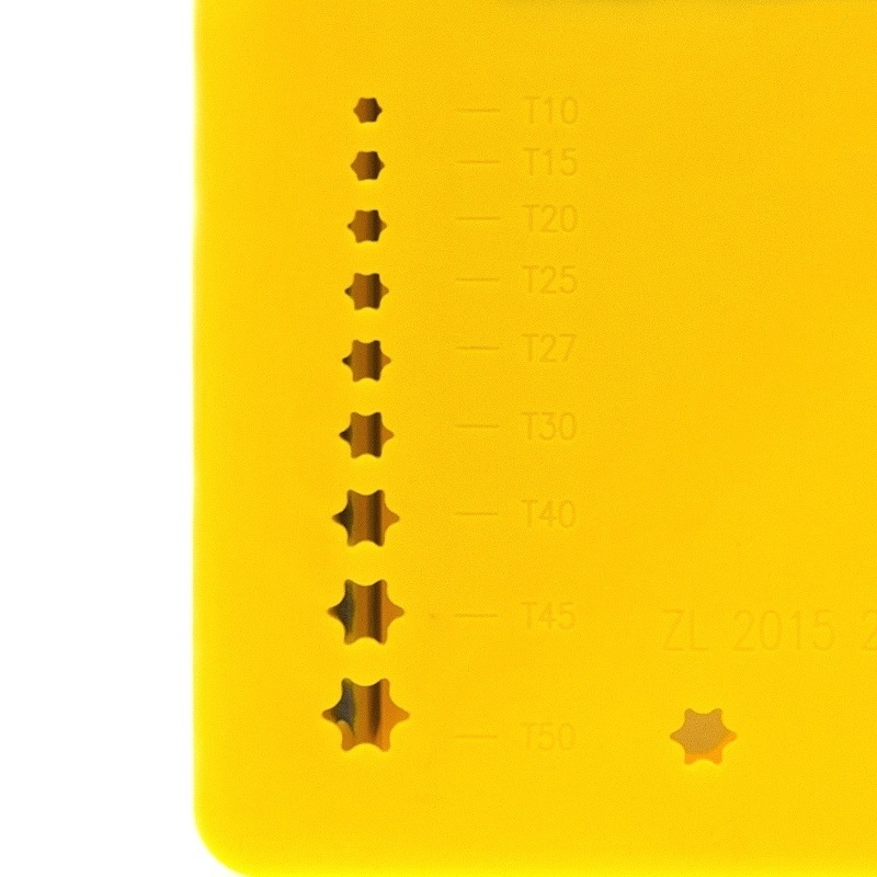 L’ensemble de ces clés sont livrés dans un coffret de protection en pastique de couleur jaune refermable et clipsable, permettant le rangement des outils et pour la compatibilité des clés utilisés puisque l’étui en question dispose dans sa face avant, des différentes empruntes constituant la forme de chaque clé.