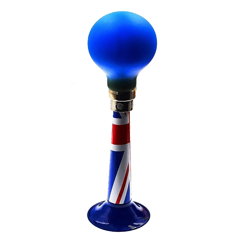 Avec des couleurs vives et une décoration sous le signe de l’Angleterre, Ce klaxon poire pour vélo reproduit fidèlement le son des klaxons des vieux tacots et voitures de la belle époque des années 60.