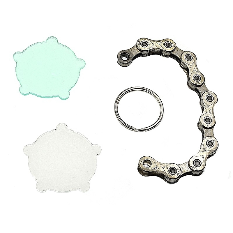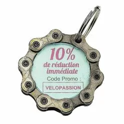 De conception française, ce porte clé circulaire fabriqué avec une chaîne de vélo.