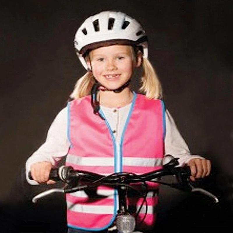 Idéal pour les petites filles se déplaçant à vélo, ce gilet rose de sécurité est conçu pour améliorer la visibilité des enfants ägés de 4 à 10 ans.