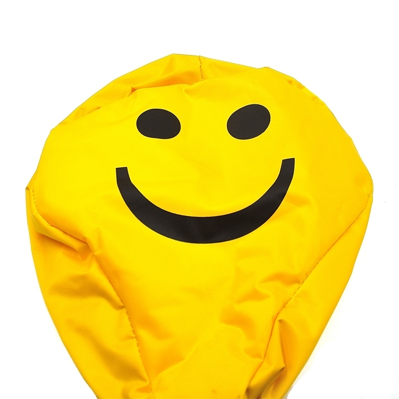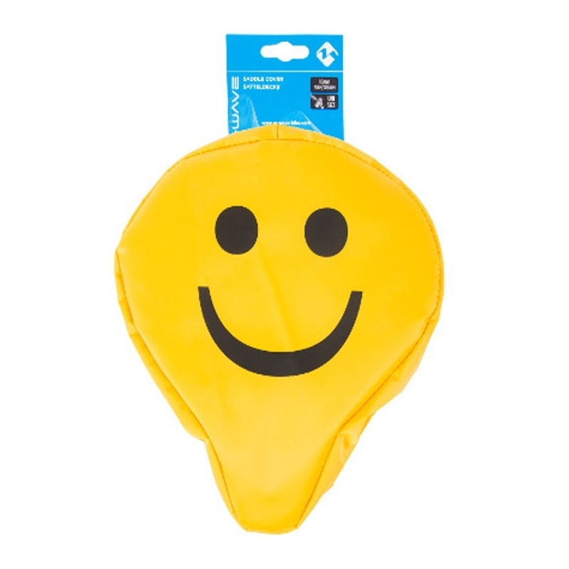 Originale avec son visage souriant, la housse de selle de vélo fabriquée en nylon déperlant de couleur jaune préserve la selle du vélo contre l’usure, la saleté, la pluie et l’humidité.