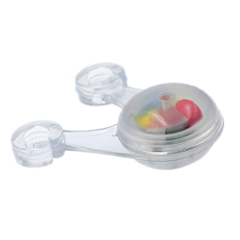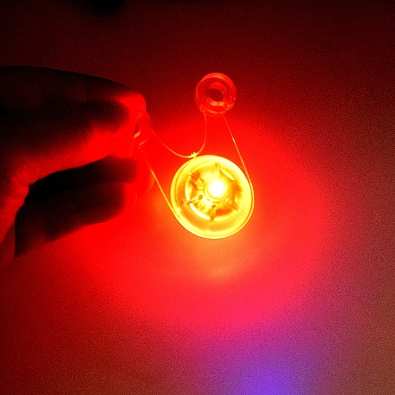 Cette lampe est alimenté par une pile bouton CR2032 et dispose de 3 modes d’éclairages : Fixe, clignotant rapide, clignotant lent.