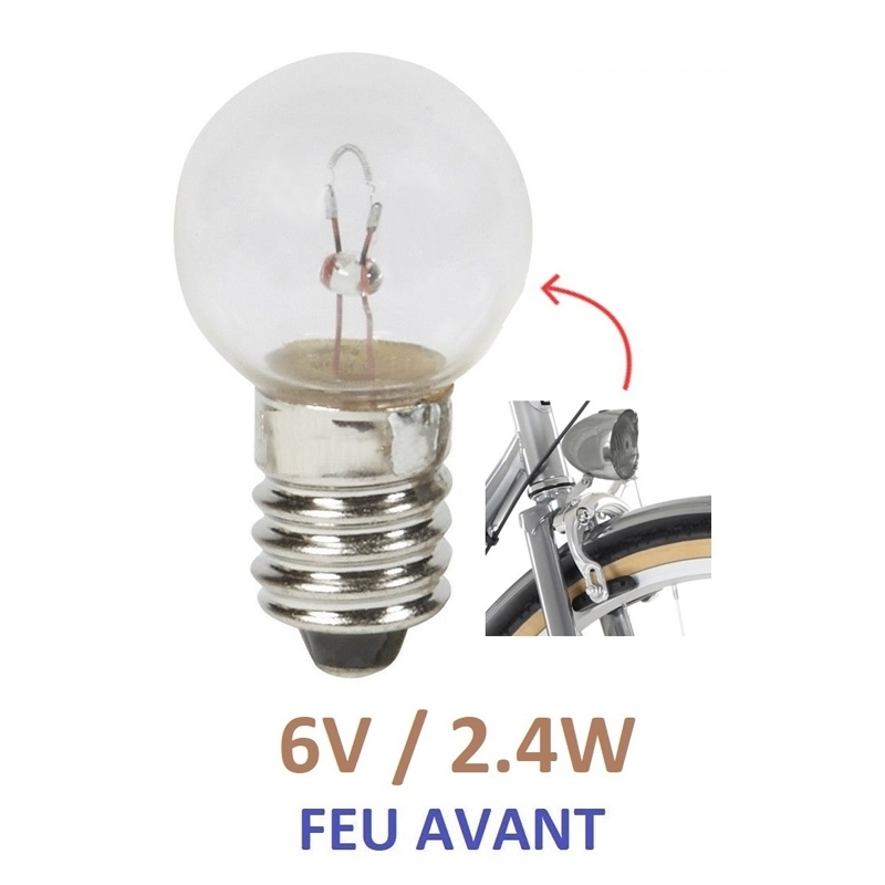 Ce lot de 2 ampoules à vis pour phare de vélo en 2,4 Watts – 6 Volts permet de remplacer une ampoule cassé ou abîmé et dans avoir une en rechange.