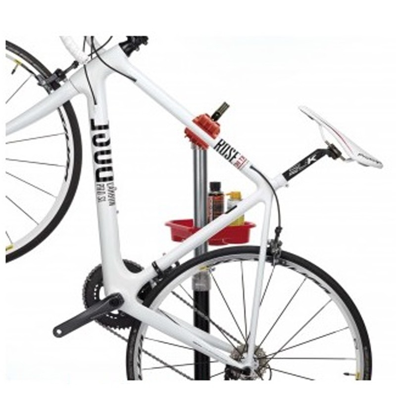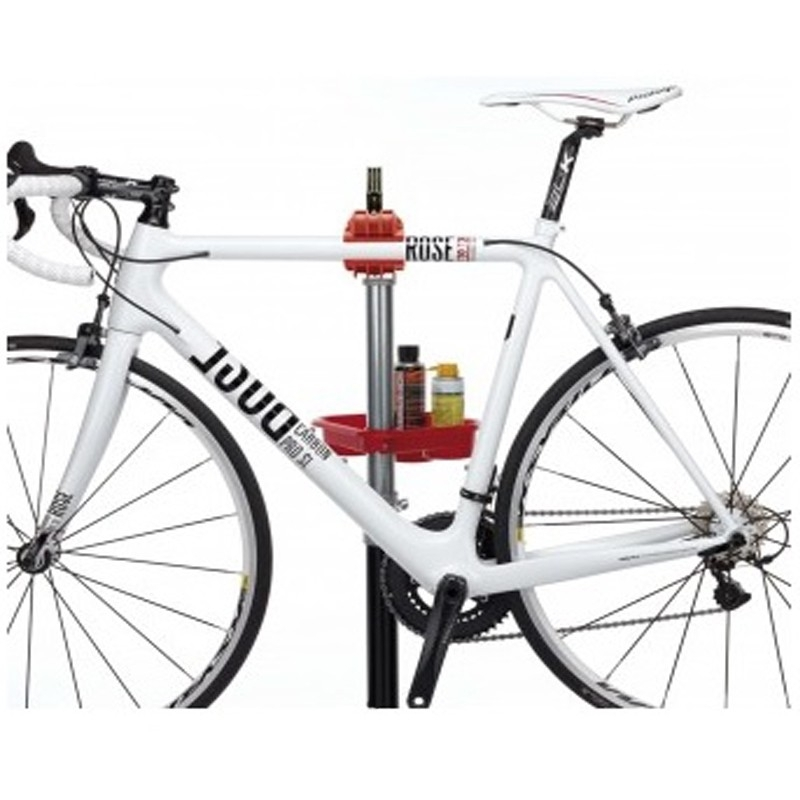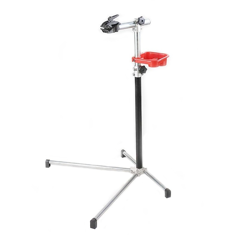 Ce pied de montage est fabriqué en acier et en fonte d’aluminium robuste, très stable, il est réglable en hauteur et dispose d’une griffe de maintien avec dispositif de serrage rapide. Le bras de serrage pivote sur 360° pour pouvoir tenir le vélo à différents points du cadre et pour rendre accessibles les parties difficiles.