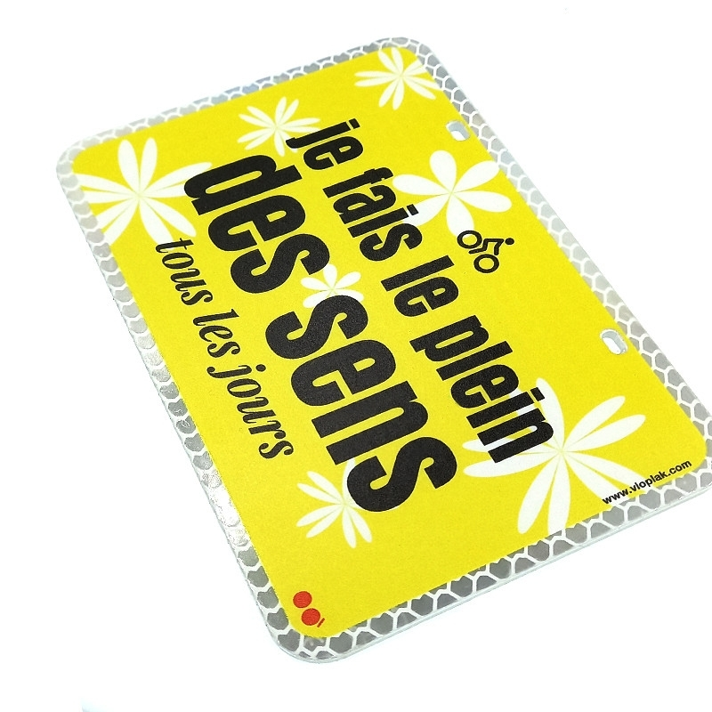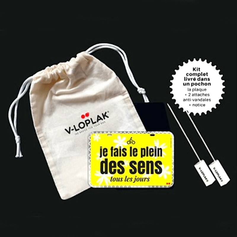 La plaque je fais le pleins des sens se fixe facilement sous la selle grâce aux 2 attaches anti-vandales. Cet accessoire de sécurité de fabrication Française est rétro-réfléchissant et original pour vos déplacements à bicyclette.