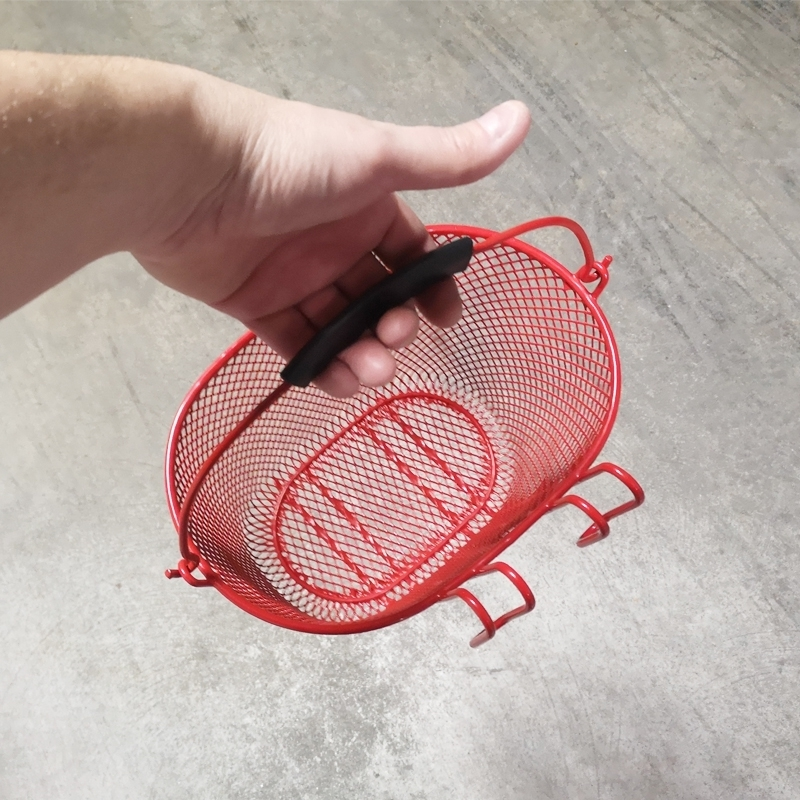Fabriqué en acier à mailles étroites de couleur rouge, ce panier avec anse repliable est compatible avec un cintre dont le diamètre doit être inférieur à 18 mm.