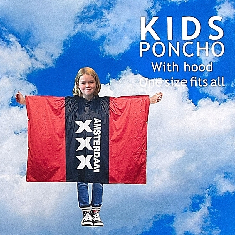 Cette cape rouge et noir Amsterdam permet aux enfants d’être bien protéger contre la pluie.