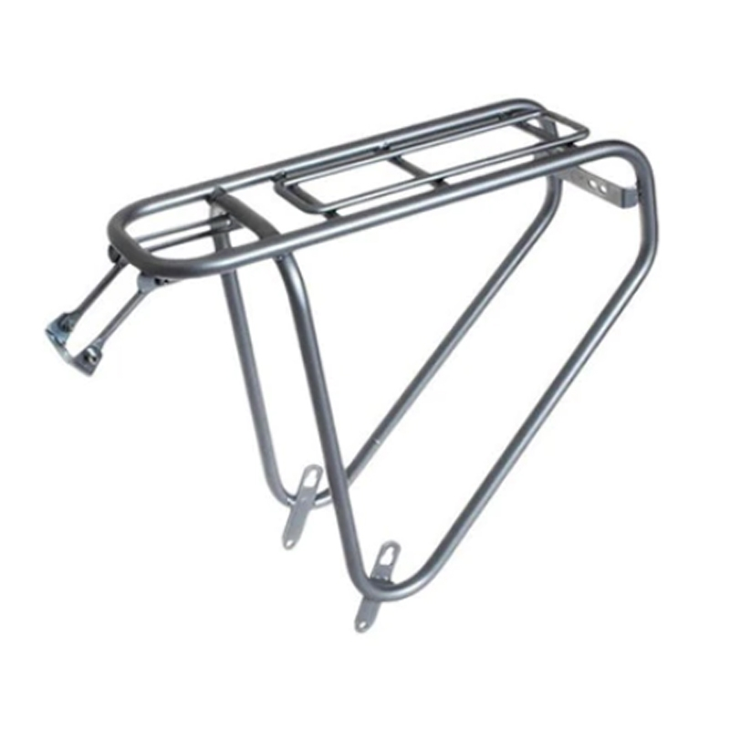 Conforme à la norme européenne EN 14872 et compatible avec les vélos de 26 à 28 pouces, le porte bagages se monte facilement au niveau des haubans et des pattes de cadre au moyen de tiges de 8,2 cm et 15,2 cm ainsi que d’un kit inclus comprenant un support sur haubans, 4 vis et écrous ainsi que 8 rondelles en acier inoxydable.