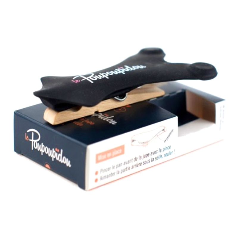 Imaginé, dessiné et fabriqué à NANTES, le Poupoupidou® est un petit accessoire design et simple d’utilisation permettant de maintenir la jupe des femmes lors de déplacements à vélo. Le Poupoupidou® se présente sous la forme d’une coque souple dans laquelle s’insère une pince et deux aimants permettant de fixer le Poupoupidou® sous la selle.