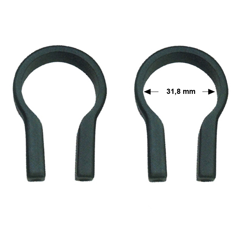 Ensemble de 2 crochets KLICKfix permettant d’adapter le support guidon sur les cintres oversize Ø 31,8 mm.
