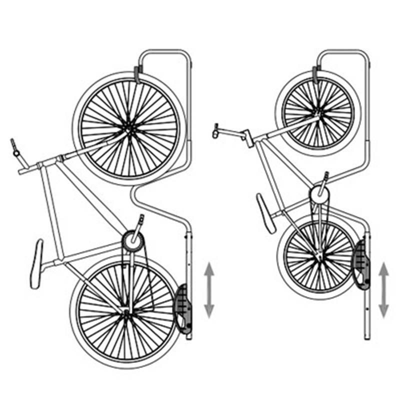 Le range vélo mural Mottez s’ajuste avec facilité en permettant de rendre compatible le support à plusieurs tailles de vélo.
