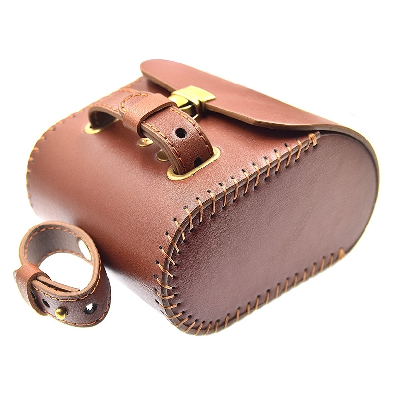 Cette saccoche de selle en cuir véritable de couleur brune avec fermture à boucles et pression permet de ranger ses affaires personnelles à l’arrière de la selle du vélo.