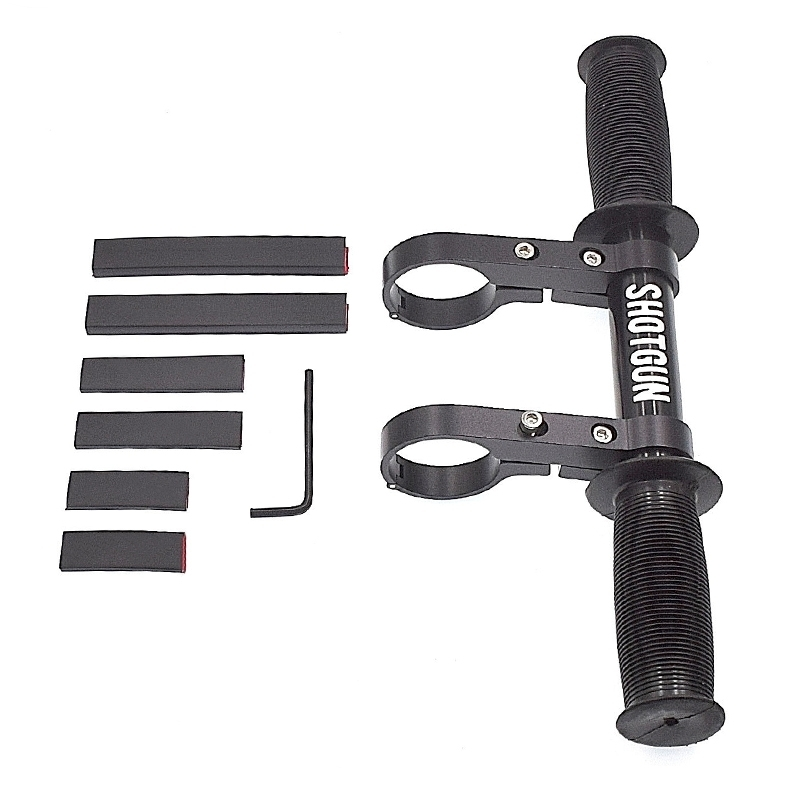 Le guidon SHOTGUN s’adapte aux guidons plats ou rehaussés de style colonne montante sur VTT, ou VTC. Il est livré avec des inserts pour s’adapter aux diamètres de guidon de 25,4 mm et 31,8 mm.