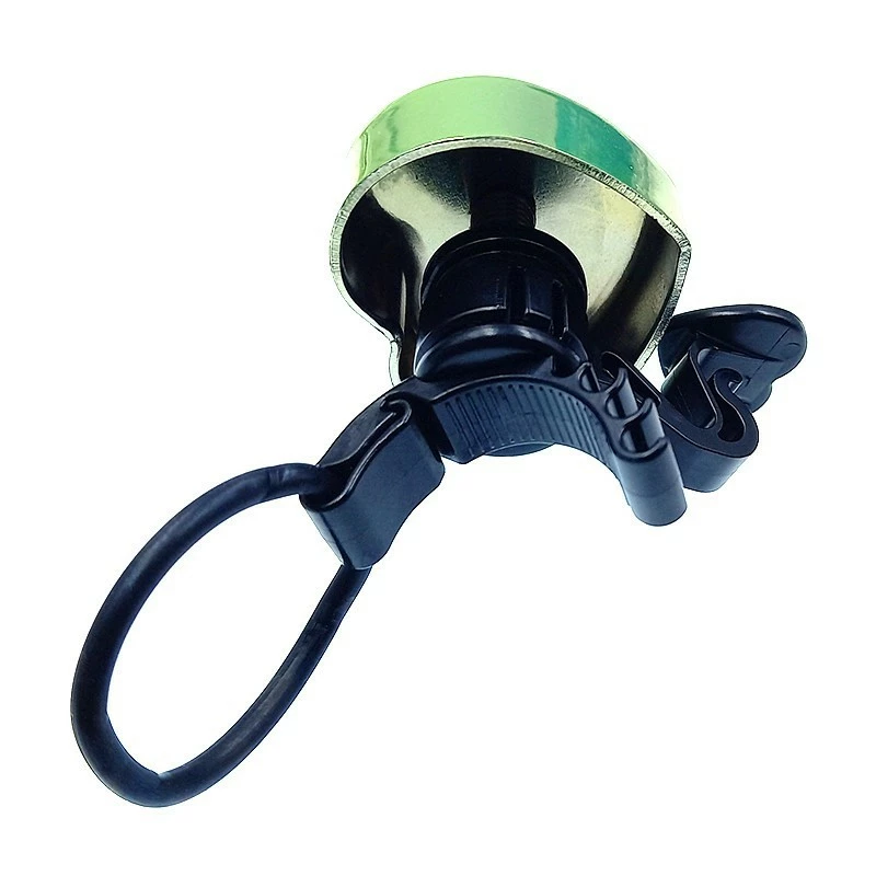 Cette sonnette en aluminium brillante avec collier en caoutchouc extensible est disponible en 2 couleurs soit en Vert ou Violet.