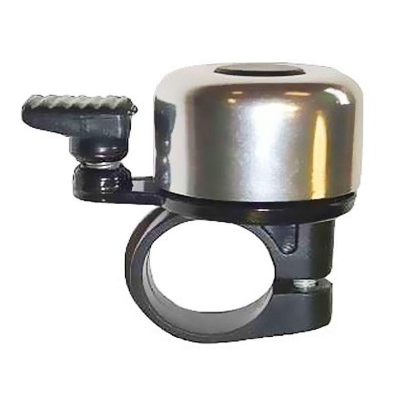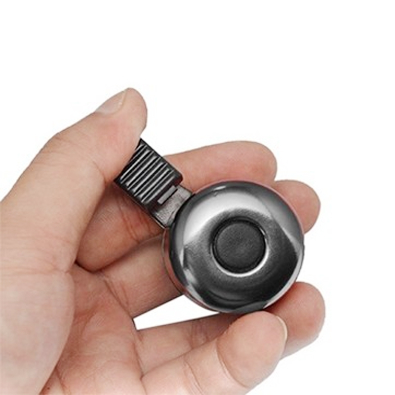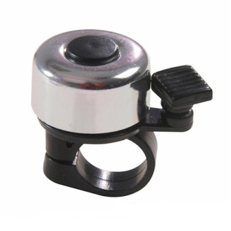 Ce timbre mini sonnette sur guidon de vélo fonctionne au moyen d’un petit marteau monté sur ressort qui viens frappé la cloche métallique.