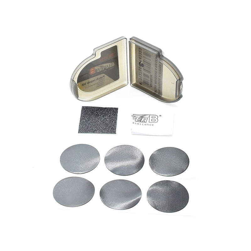 Idéal pour la réparation des chambres à air vélo, ce mini kit est constitué de 6 rustines de 25 mm de diamètres autocollantes rondes , 1 Papier de verre.