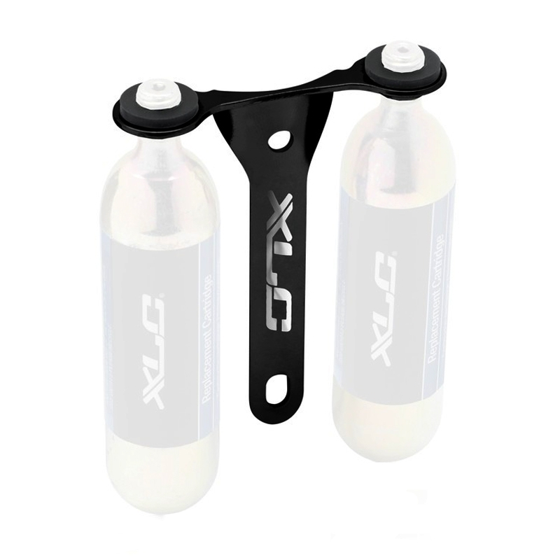 Le support XLC en aluminium noir permet le transport 2 cartouches CO2 avec filetage pour un montage au dessous du porte-bidon.