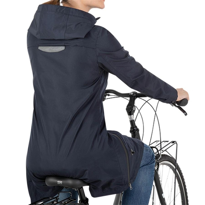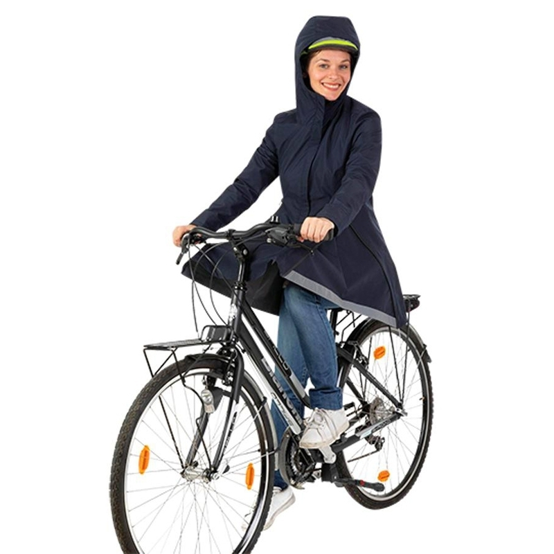 Parka disposant d’une coupe féminine chaude et pratique, transformable en cape/couvre-jambes pour une protection optimale lors des déplacements quotidien à vélo par temps froids et humides.