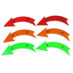 Ces catadioptres en plastique résistant en forme de flèche sont vendus par paire, ils conviennent pour réfléchir la lumière sur les roues de vélo. Facile à installer et à enlever sans avoir recours à des outils, les réflécteurs colorés disponibles en vert, orange ou roue se montent sur les rayons au moyen de vis et rondelles fournis.