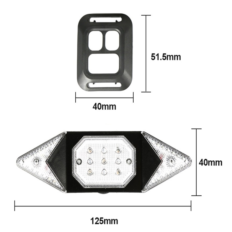 - Dimensions du clignotant : (L) 125 x (H) 40 x (P) 35 mm