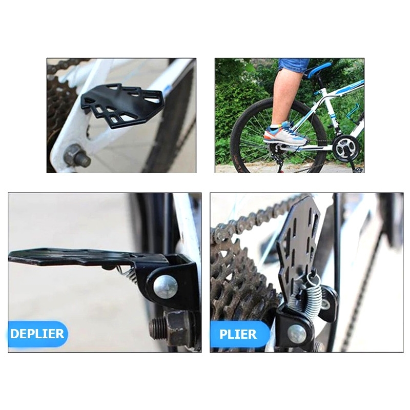 Cette paire de répose-pieds arrière de vélo sont en acier de qualité, durable, antirouille et de haute résistance, principalement utilisée pour placer les pieds des jeunes enfants lorsqu’ils sont assis sur le siège arrière du vélo, et pour protéger le bout des pieds contre le contact avec la roue du vélo.