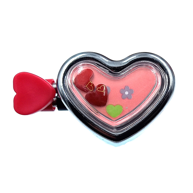 Cette sonnette en aluminium en forme de coeur rose avec surface translucide renfermant des petits coeurs virvoltants est spécialement dédiée aux petites filles à vélos.